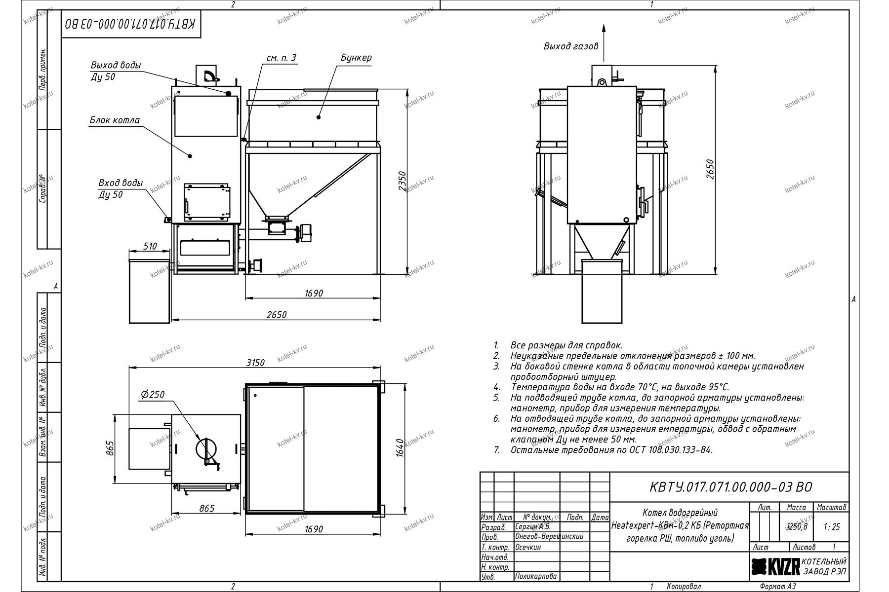 Максимальная тепловая мощность, кВт | 200 | Полный объем котла, м³ | 97 |